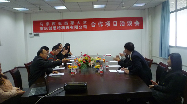 3月16日上午,马来西亚泰莱大学与重庆创思特科技有限公司合作项目洽谈会在创思特公司会议室举行。马来西亚泰莱大学主任林纪频女士,马来西亚沙巴艺术学院董事长拿督杨忠勇博士,重庆创思特科技有限公司执行董事王成玮先生、常务副总经理黄晓林先生、KY开元副校长黎明教授、校长助理白成良教授、行政主管游祥国先生,及相关工作人员出席了此次会议。洽谈会由创思特行政主管游祥国主持。