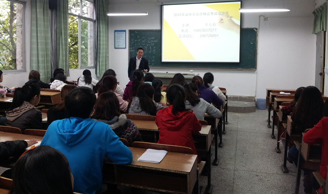10月11日,金融财会系在XJ-1207举办了2012年金融财会系从业资格专题讲座,光大证券股份有限公司客服部经理周文彪受邀担任此次活动的主讲,我系2011级金融与证券专业全体学生参加了本次讲座。