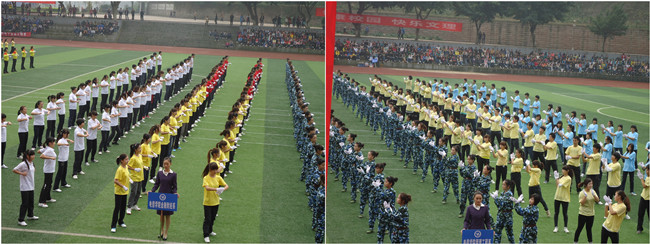 宽广的运动场上,成了欢乐的海洋。看,鲜艳的五星红旗在前面引路;听,激越的《运动员进行曲》在运动场回荡。各系运动员方阵队迈着整齐的步伐首阔步走入运动场。他们将驰骋在运动场上,海阔凭鱼跃,天高任鸟飞。畅游四海,博击长空。
