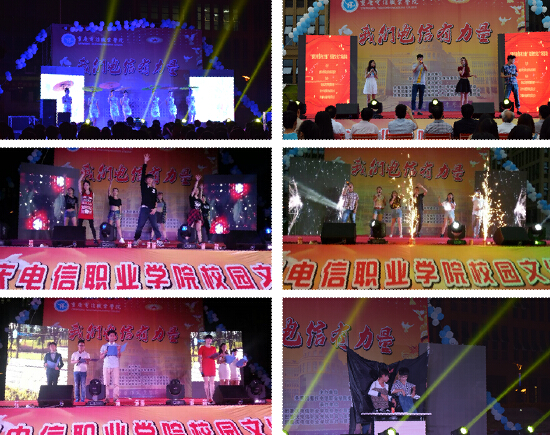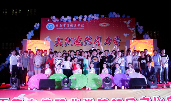 5月28日19:00,由校团委主办,信息工程学院、财会与金融学院、设计与建筑学院团总支共同承办的 “我们电信有力量”主题校园文化广场文艺晚会在龙水湖校区图书馆广场举行。学校党委书记周及至、副书记白成良,师生代表共计700余人观看了本次晚会。