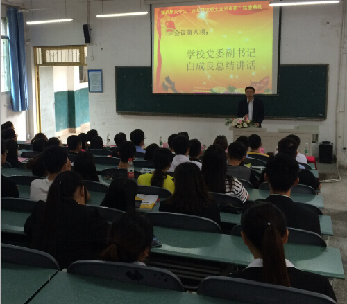 校团委书记苏靖淋做了培训班工作总结,并宣读《关于准予第四期大学生“青年马克思主义者”培训班学员结业及表彰优秀学员的决定》。到会领导为学员颁发了结业和荣誉证书。来自汽车与电子工程学院的优秀学员代表牟玉玲做了发言。