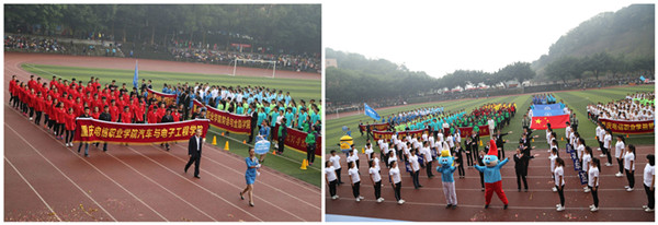 11月5日,开幕式上,在雄壮的运动员进行曲伴奏下,运动员、裁判员入场。各二级学院方队进行了各具特色的表演。