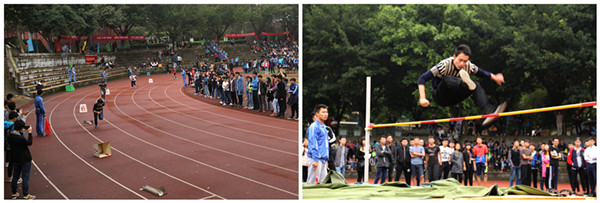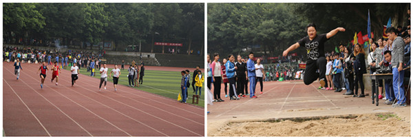 运动会期间,各参赛运动员们本着“友谊第一、比赛第二”的运动精神,在多个项目中表现不俗,如中部国际学院的邹艳红同学在女子四百米和八百米项目中打破学校记录获得了冠军;管理工程学院的马乾倩同学表现突出,揽获的多个项目奖项。运动员们团结拼搏的精神感染着在场的每一位观众。
