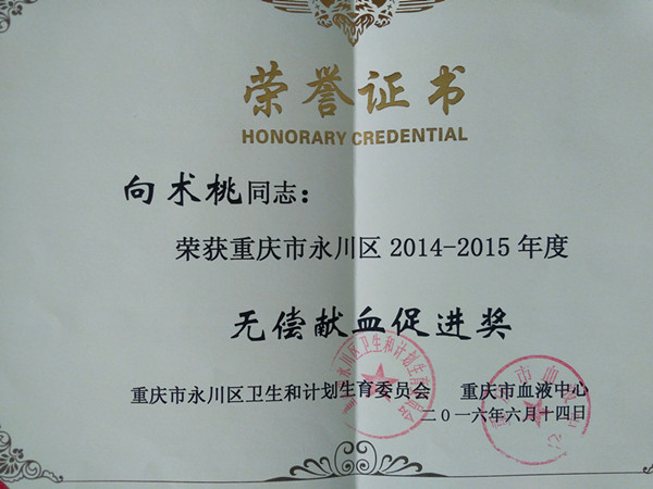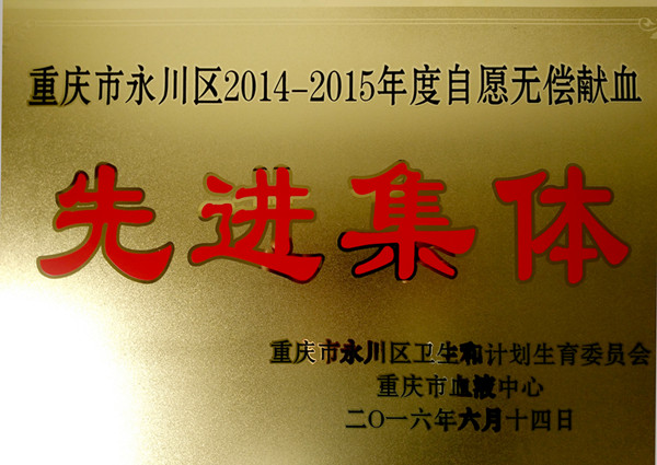 日前,永川区卫生计生委、重庆市血液中心联合发文表彰2014-2015年度无偿献血先进集体和个人,KY开元被授予永川区2014-2015年度无偿献血先进集体;设计与建筑学院党支部书记向术桃荣获无偿献血促进奖;KY开元青年志愿者万靖、何一舟、谭紫婷、谭君杰等荣获优秀志愿者。这是继2012-2013年度获得无偿献血先进集体后,KY开元再次获此殊荣。