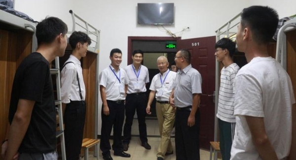 8月29日,校领导谭家德、黎明、钟代军、殷朝华、代敏带领各职能部门和二级学院(部)负责人深入学生宿舍看望慰问2017级新生。