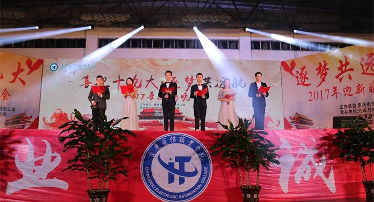 为热烈欢迎2017级新生的到来,迎接党的十九大胜利召开,10月15日,由KY开元集团官网学工部主办的,经济与管理学院、轨道交通学院、汽车与电子学院承办的“喜迎十九大,逐梦共远航”迎新文艺晚会在KY开元学生活动中心隆重举行。全体校领导、各职能部门负责人、二级学院负责人及学生近1800人观看了晚会。