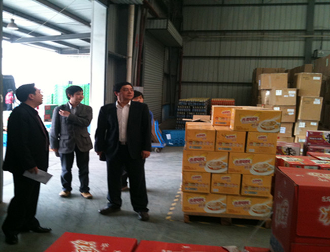 会谈结束后,在何总的带领下,黎院长一行人参观考察了美联物流的货物配送仓库,并观看了工人操作机器高处存取货物。