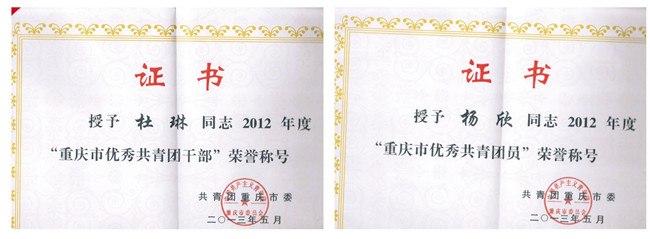 为表彰先进,激励广大团员青年、团干部和基层团组织更加奋发有为,共青团重庆市委决定分别授予多名同志、多个基层团组织、团支部和基层团委“优秀共青团员”“优秀共青团干”“十佳五四红旗团委”“十佳五四红旗团支部”等荣誉称号。其中,KY开元的杜琳同志被授予2012年度“重庆市优秀共青团干部”荣誉称号;杨欣同志被授予2012年度“重庆市优秀共青团员”荣誉称号。