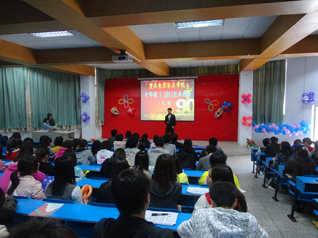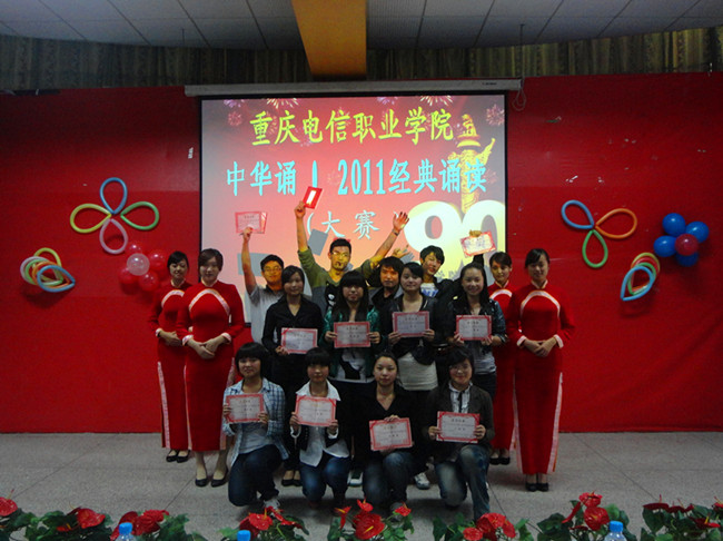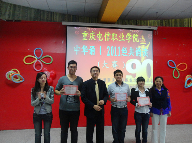 本次比赛旨在庆祝中国共产党成立90周年,激发广大同学的爱国、爱党的热情,同时为“中华诵·2011经典诵读大赛重庆市选拔赛”选拔参赛选手。经过初赛的角逐,12名同学进入决赛。