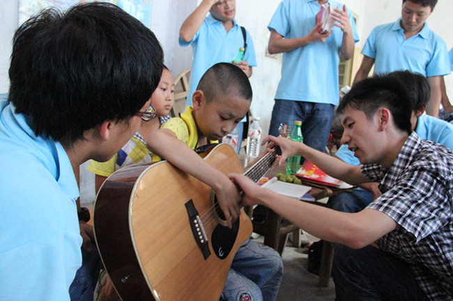 78,廖良刚老师、重庆文理学院杨娟老师、村支部书记陈?述、双凤村主任吴应岗等人带领同学们走进了凤凰镇双凤村“留守儿童家园”,同学们和留守儿童们进行“一对一”的交流。除了补习功课、讲故事、唱歌儿、同他们一起做游戏外,还向孩子们赠送了课外书籍、笔记本等文具。并鼓励孩子们要健康成长,好好学习,天天向上。活动结束后,一位老爷爷含泪说到:非常感谢青年大学生志愿者们对孩子的帮助和关爱。