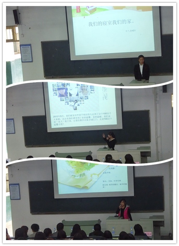 本次寝室文化节有初赛和决赛,寝室PPT展示比赛是决赛的内容。参赛宿舍向评委和观众展现了自己所理解的寝室文化,充分发挥他们的创造力和想象力,将宿舍的的文化内涵与宿舍设计完美结合。最终女二舍401宿舍,以整洁的寝室卫生和精彩的PPT演说获得了第一名。