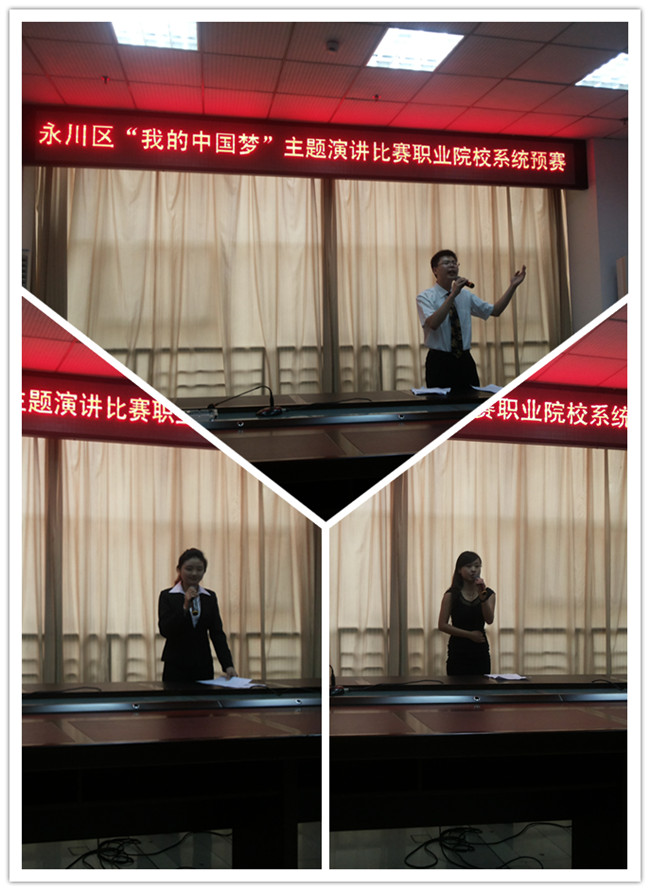 为认真学习贯彻习近平主席在十二届人大第一次会议上关于“中国梦 中国人”的讲话精神,由区委、区政府、组织部、宣传部、团委共同举办的“我的中国梦”主题演讲比赛于4月26日下午在团区委群团办公室举行了职业院校系统预赛。来自全区11所职业院校的24名参赛选手分别作了精彩演讲。
