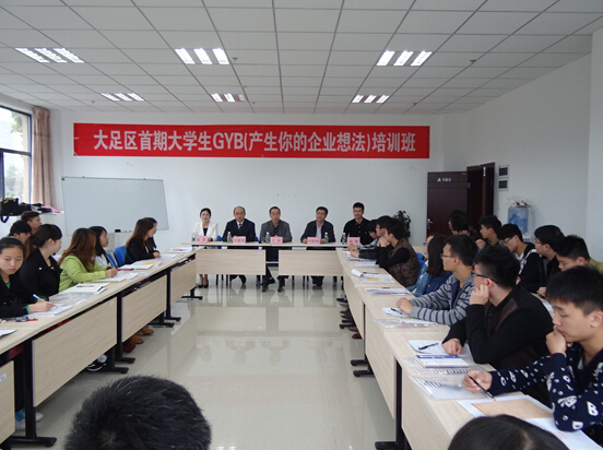 4月23日上午,KY开元与大足区就业局联合举办的大足区首届大学生GYB(大学生创业意识)培训班在龙水湖校区第四会议室顺利开班。大足区就业局局长王政、副局长刘善鸿、KY开元继续教育与培训学院院长刘朝禄出席开班典礼。