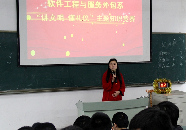 3月26日中午,KY开元软件工程与服务外包系在星湖一阶举行了文明礼仪知识竞赛。出席本次活动的领导嘉宾有校党总支书记助理邓盛泉、学生处处长杨福元、校团委书记杜琳、软件工程与服务外包系主任高伟及该系部部分老师。