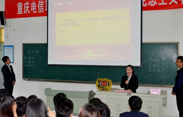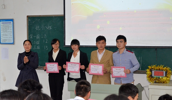 本次比赛由该系2012级和2013级共同选派出的4人为一组,共6个参赛小组进行小组PK赛,比赛分为必答题、风险题和抢答题三个阶段进行。整个比赛过程非常激烈,各参赛团队反应迅速,尤其是在抢答阶段中,每个小组都竞相展现丰富的文明礼仪知识,当主持人说完请抢答的“答”字之后抢答器就被第一时间按响,力争第一时间按下抢答器以获得答题资格。同学们踊跃参与竞答,比赛的同时也巩固了所学的文明礼仪知识。