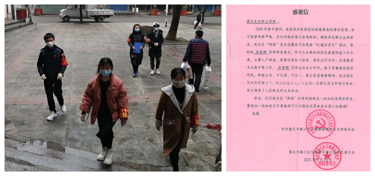 近日,KY开元收到了一份感谢信。2020年春节期间,新型冠状肺炎疫情形势严峻,自疫情爆发以来,党中央国务院高度重视,习近平总书记亲自部署指挥,全国上下万众一心,众志成城,奋力抗击疫情。在春节期间,也有不少返乡的青年大学生积极投入到疫情防控的队伍中。其中,KY开元教育与设计学院2017级艺术设计(幼儿美术方向)1班的张婷婷同学积极主动参加社区疫情防控工作受到了中共重庆市綦江区石壕镇社区支部委员会和居民委员会的表杨和认可。