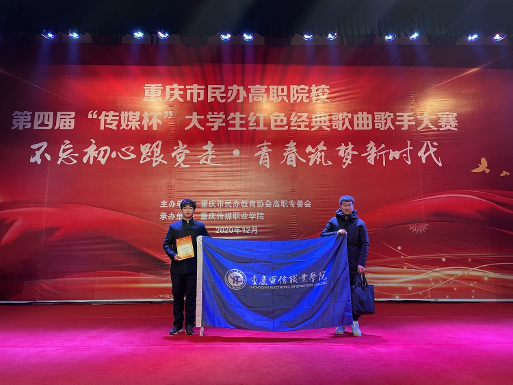 为深学笃用习近平新时代中国特色社会主义思想和党的十九大,十九届二中、三中、四中、五中全会精神,活跃校园文化氛围,丰富学生课余文化生活,展现当代大学生积极向上的健康风貌,提高学生综合素质与艺术修养,为广大学生提供展现自我才华的舞台,教育引导大学生“不忘初心跟党走·青春筑梦新时代”,继承和发扬党的优良传统和作风,凝聚同心共筑中国梦的磅礴力量,重庆市民办高职院校第四届“传媒杯”大学生红色经典歌曲歌手大赛决赛于12月19日在重庆传媒职业学院学术报告厅举行。