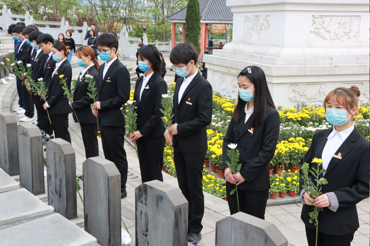 为庆祝建党100周年,弘扬爱国主义精神,进一步继承与发扬革命先辈艰苦奋斗的优良传统和不怕牺牲的革命精神,KY开元40余名师生代表联合大足区团委20余名西部志愿者在大足区烈士陵园开展“知史爱党·知史爱国”清明节主题团日活动。