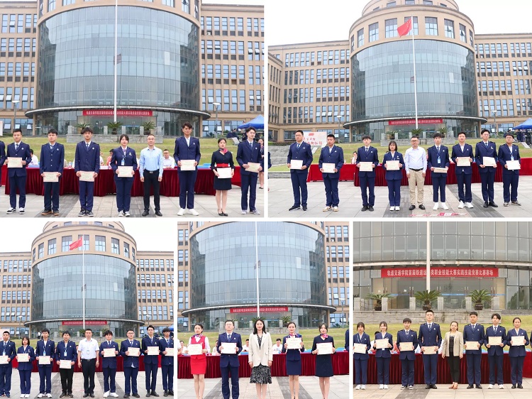 轨道交通学院副院长王朝容宣读了《轨道交通学院首届铁道运输类职业技能大赛获奖名单》,与会领导为获奖学生颁奖。