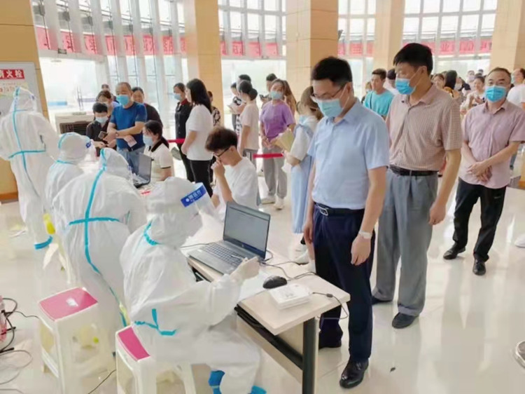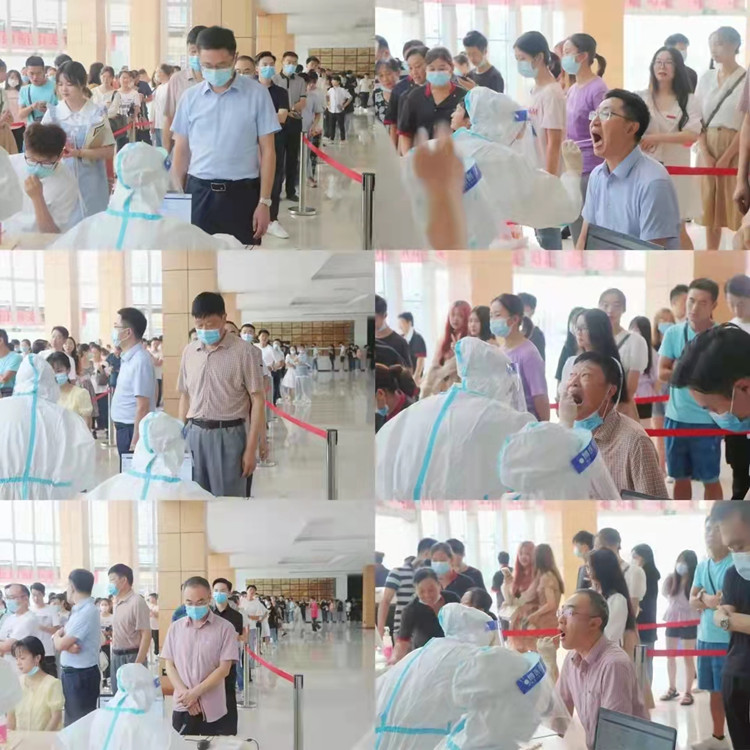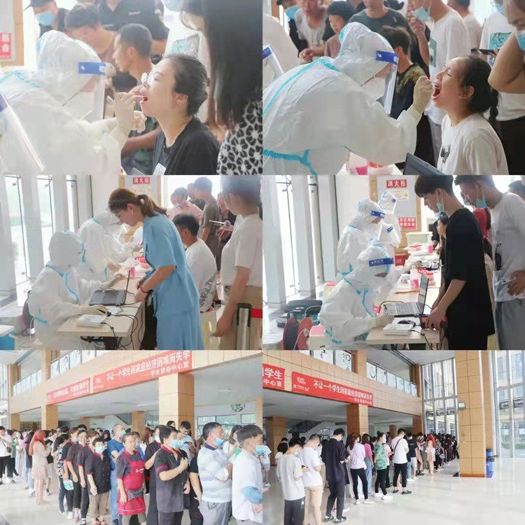 校长曹继建、党委书记张勇刚、执行校长李渤川、常务副校长郭少东、副校长皇甫涛深入现场指导采样工作,并带头参与采样。学校防控办、教学部、学工部、总务部、安管处、教信部等部门通力合作,密切配合,协助现场医务人员高效有序地完成了第一批次采样工作。