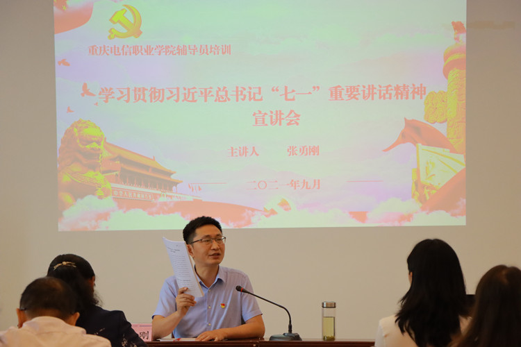 仪式结束后,为期一月的培训在张勇刚主讲的《学习贯彻习近平总书记“七一”重要讲话精神》中,拉开序幕。宣讲会上,张勇刚从“深刻认识、准确把握习近平总书记“七一”重要讲话的重大意义”“深入学习领会习近平总书记“七一”重要讲话提出的一系列新思想、新观点、新要求”“深学笃用习近平总书记“七一”重要讲话精神,在新的征程上奋力开创更加美好的未来”等三个部分深入阐述了习近平总书记“七一”重要讲话精神。解读了向世界作出的“四个庄严宣告”,中国共产党百年创造的“四个伟大成就”以及以史鉴今、开创未来的“九个必须”。