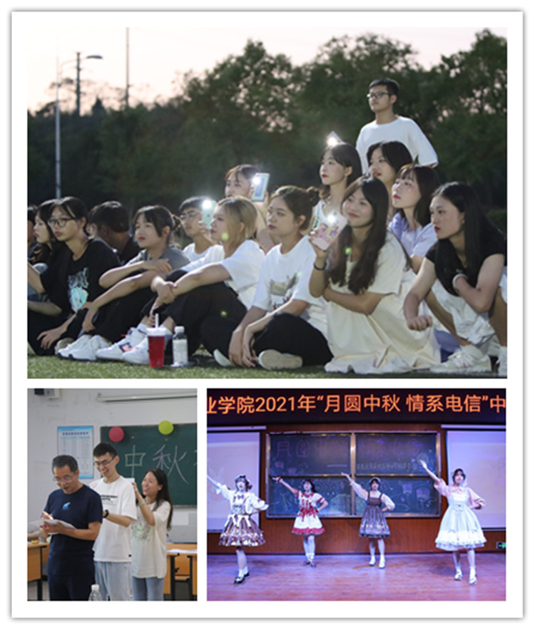 中秋团圆日,全校师生共欢庆。各学院积极组织开展丰富多彩的校园文化活动,或组织召开中秋座谈会,或开展中秋新生慰问活动,或走访寝室慰问,或举办中秋文艺联谊。中秋期间,大一新生在军训场依旧坚持训练,飒爽英姿展现电信学子良好精神风貌,新生们在连队开展“拉歌”“跳舞”等活动,谈入学感受、聊大学生活、分享对家人的思念之情。此外,校团委还组织开展了“快闪”、“特别文艺演出”等活动。