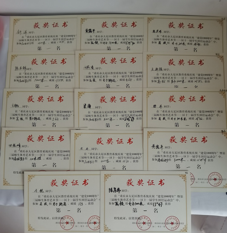 本次田径运动会分为田径和跳绳两个团体项目,比赛项目为长短跑、接力赛、跳远、跳高、单人跳绳、双人跳绳和集体跳绳等项目,共吸引了来自大足5所高校100余名教练及队员参加此次比赛。