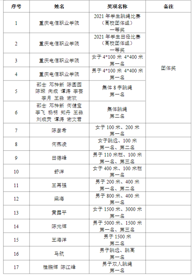 附件:重庆市大足区第十一届田径运动会暨第三届体育艺术节获奖人员名单