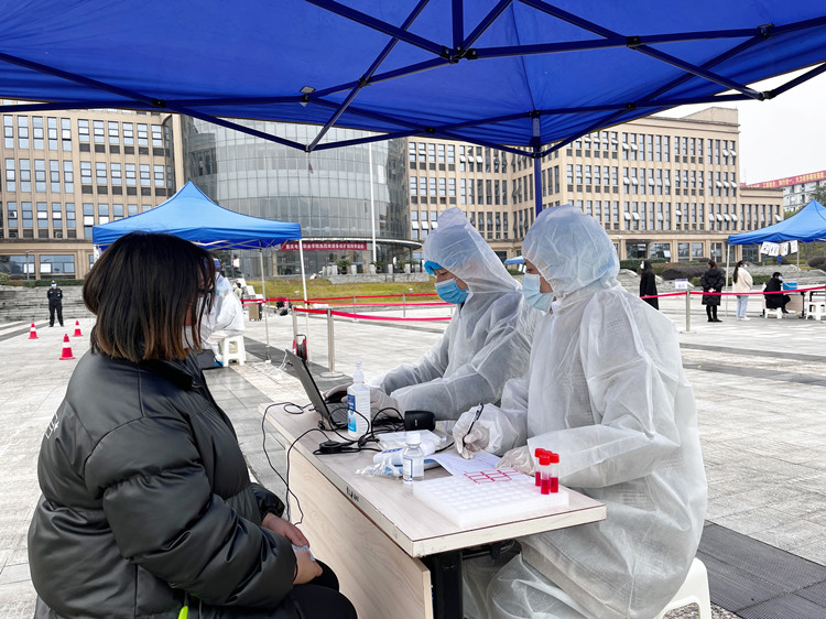 演练现场整体流程严谨、环环相扣、井然有序。演练人员全程佩戴口罩,间隔1米距离,依次进行采样;工作人员严格按照各项防控工作要求,有序进行全员核酸检测的人员召集及采集安排、体温检测及异常情况处置、信息登记、核酸采样、模拟全员核酸检测场景。