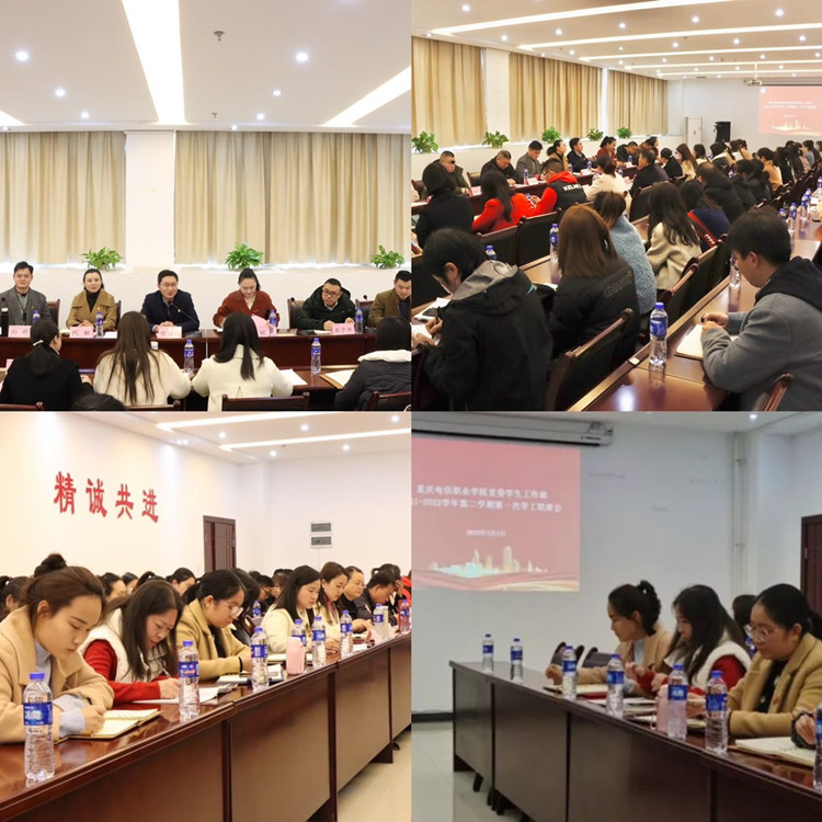 会上,校体委、教学部、学工部、校团委、安管处、总务部、教信部、财务部分别就本学期重点工作进行了讲解和部署,潘妮对2021年学生工作取得的成绩及2022年春季开学学生返校情况进行了汇报,并就2022年学工系统重点工作做了说明。她表示,全体学工人要加强与各职能部门联动,进一步构建完善“三全育人”长效机制,确保新学期工作的顺利开展。