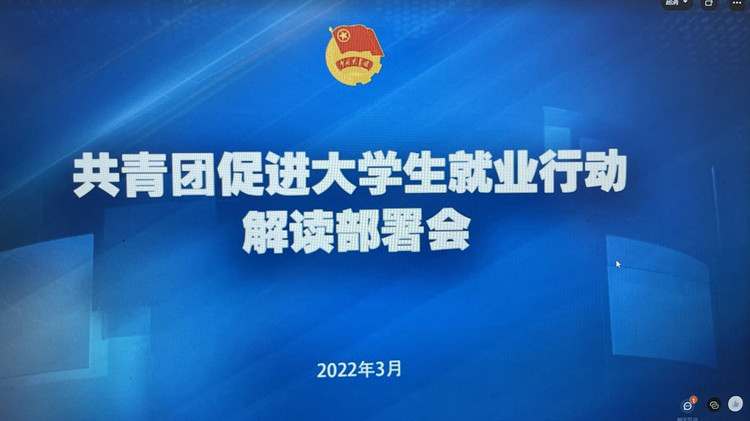 为贯彻落实党的十九届六中全会精神和中央经济工作会议精神,推动“共青团促进大学生就业行动”落细落实。2022年3月9日15:00,共青团KY开元集团官网委员会组织相关人员在图书馆A106会议室参加团中央“共青团促进大学生就业行动”线上解读部署会。党委副书记、副校长代敏,党委学生工作部部长潘妮,校团委书记、党委学生工作部副部长向毅出席,各二级学院团总支书记、校团委全体成员、就业指导中心全体成员参加了本次会议。