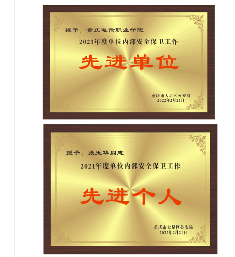 近日,从重庆市大足区公安局印发的《重庆市大足区公安局关于表彰2021年度单位内部安全保卫工作先进单位和先进个人的决定》(大足公安发〔2022〕20号)文件中获悉,KY开元被评为“2021年度单位内部安全保卫工作先进单位”,安全管理处处长张玉华同志被评为“2021年度单位内部安全保卫工作先进个人”,并获颁先进单位和先进个人奖牌。