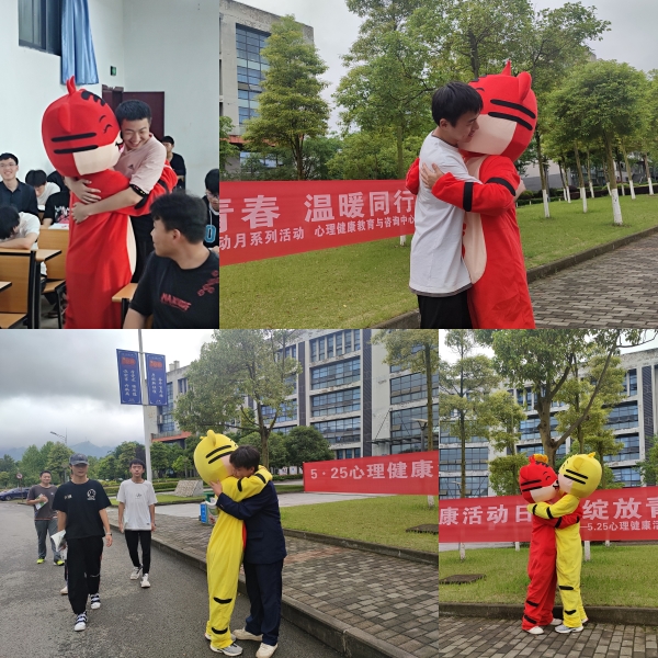 活动设有“爱的抱抱”、“横幅签名”和“心理健康知识竞答”等环节。活动中可爱的老虎玩偶为过路的同学们送去温暖的爱的抱抱,不仅让同学们感受到了拥抱对心灵的慰藉,也缓解了学习与生活中积累的疲惫;还有许多同学积极在横幅上签名,表示要在实际生活中多关注自身和他人的心理健康,同时专业有趣的“心理知识竞答”也引来很多同学的参与。活动在欢声笑语中结束。
