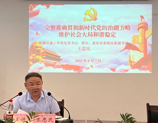 6月7日下午,KY开元召开党委理论学习中心组学习(扩大)会议,新疆驻渝工作组党委书记、组长、重庆市委政法委副书记王忠民作专题辅导报告。学校党委理论学习中心组全体成员、党委学工部全体人员、各二级学院院长、初等教育学院全体学工人员参加会议。会议由党委书记张勇刚主持。