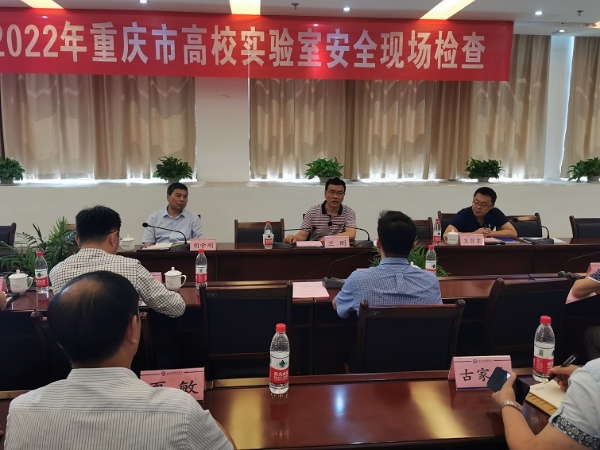 6月14日上午,重庆市实验室安全检查组由原重庆文理学院党委副书记兰刚带队一行3人来校进行现场检查。校长曹继建、党委书记张勇刚、常务副校长郭少东、副校长皇甫涛,各二级学院党政领导以及相关职能部门负责人参会。现场检查工作会设图书馆B501,会议由专家组组长兰刚主持。