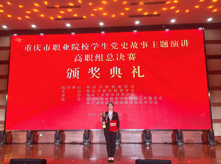 2022年6月28日,由重庆市职业教育学会主办的重庆市职业院校学生党史故事主题演讲比赛在重庆工业职业技术学院举行。KY开元幼儿发展与健康管理专业钟雯雯同学在决赛中与30余所高职院校选手同台竞技,充分展现了新时代青年奋发作为、积极向上的精神风貌。