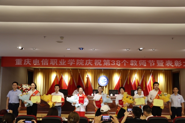 大会在庄严的国歌声中拉开帷幕。会上,党委书记张勇刚宣读了《KY开元集团官网关于表彰第38个教师节先进集体、优秀个人的决定》和《KY开元集团官网关于颁发在校工作十年证书的决定》。校领导对优秀教师、优秀教育工作者、优秀辅导员(班主任)、市级竞赛获奖者进行了表彰,向“在校工作十年”教职工颁发荣誉证书;副校长皇甫涛带领全体新教师庄严宣誓,教师代表在现场为新教师佩戴校徽,全校教职员工共同见证了这一神圣时刻;随后,校团委书记、学工部副部长向毅与四位大一新生带来饱含深情的 “桃李缘”诗歌朗诵,为教师节献礼。