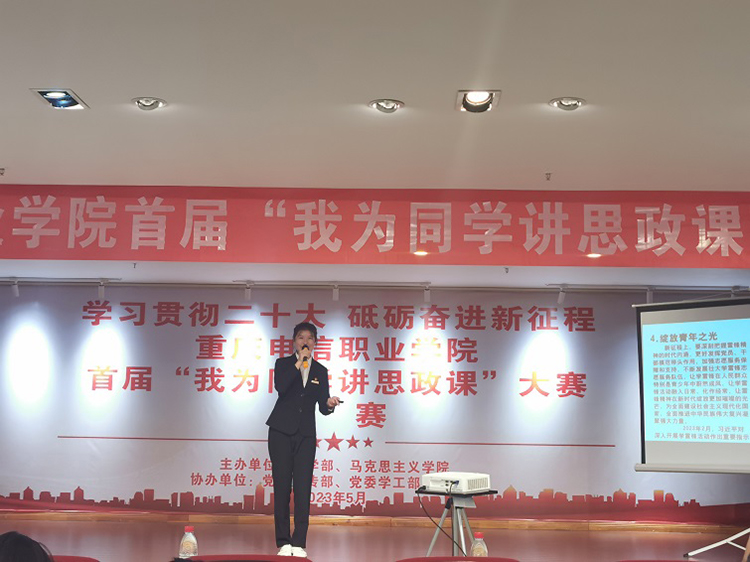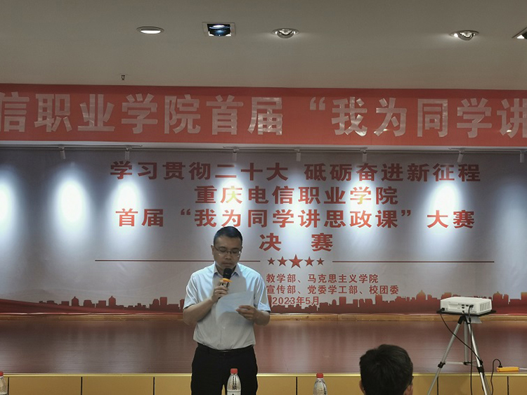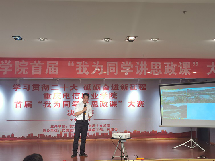 决赛现场,参赛选手以学生“思政讲师”的身份站上决赛“讲台”,结合自身实际和所学专业特色,分别以“在实现中国梦的实践中放飞青春梦想”“乡村振兴,共建小康”“引领新时代发展,坚守中国精神”“红心向党,不负韶华”“青春的誓言--当代青年如何成为堪当民族大任的时代新人”“绿水青山就是金山银山”等为主题,以学生的视角,用青春豪迈的语言对新时代党的创新理论的道理、学理、哲理进行了精彩的“现场讲课”展示。讲课形式新颖,语言生动,极具感染力;内容丰富,既立足于个人的青春梦想,又彰显了当代青年大学生的责任与担当;既心系乡村振兴、新时代、新征程、新重庆建设,又展示了新时代青年志存高远,胸怀远大理想、坚定信念和为崇高理想信念而不懈奋斗的精神追求。经过激烈角逐,作品《在实现中国梦的实践中放飞青春梦想》获一等奖,《青春的誓言--当代青年如何成为堪当民族大任的时代新人》等三个作品获二等奖,《绿水青山就是金山银山》等六个作品获三等奖,《引领新时代发展,坚守中国精神》等两个作品获优秀奖。
